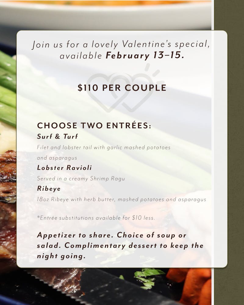 Served daily from 11am-2pm, enjoy lunch for $15 or less!